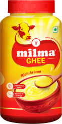 Milma ghee has the ideal golden yellow colour due to presence of natural carotene in cow milk. (In contrast, ghee manufactured from buffalo milk is white in color). No artificial colours or flavours are added in Milma ghee. Natural aroma and flavour of ghee is retained since ghee is produced directly from fresh cream instead of going in for melting stored butter
